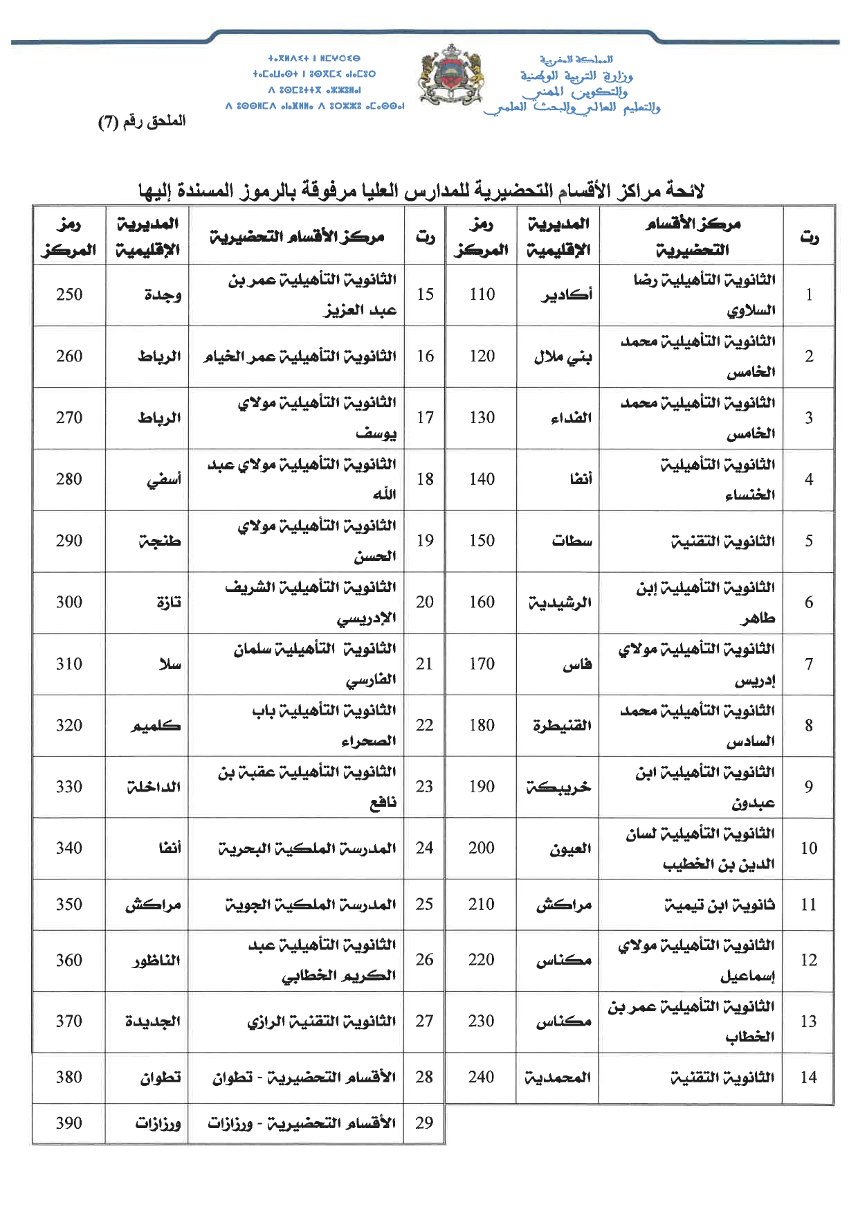 الحركة الانتقالية الخاصة بالأساتذة العاملين بالأقسام التحضيرية 2021-2022