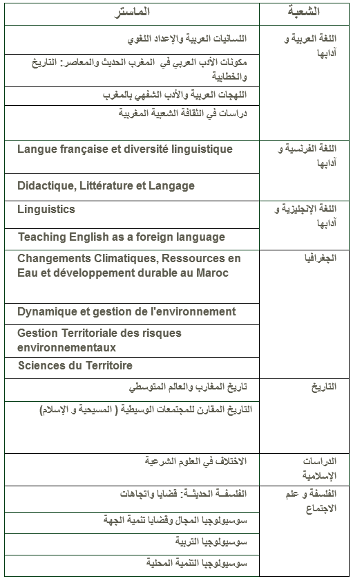 مسالك الماستر برسم الموسم الجامعي 2018-2019 (ستفتح هذه التكوينات بعد اعتمادها بشكل رسمي من طرف الوزارة الوصية)