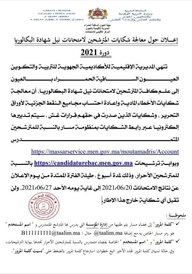 شكاية طلب تصحيح امتحانات البكالوريا 2021
