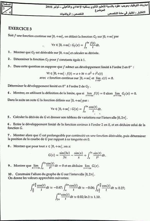 Alwadifa Maroc / Alwadifa TAALIM / Autres offres d'emploi / Modèles d'examen نماذج مباراة التعاقد سلك الثانوي تخصص الرياضيات 2016 ShareSharePin It نماذج مباراة التعاقد سلك الثانوي تخصص الرياضيات 2016
