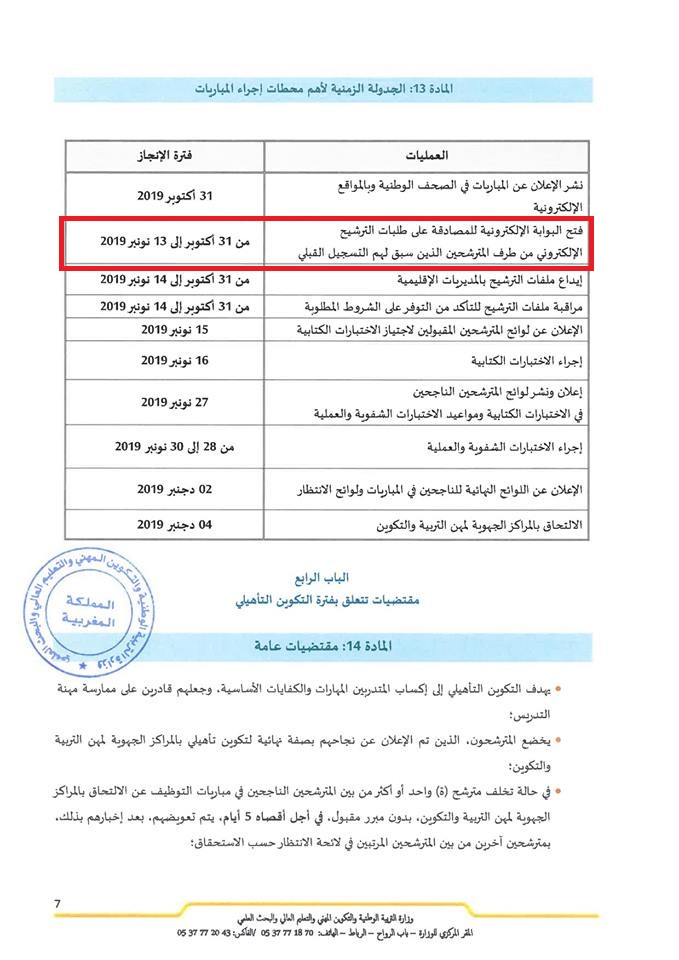 وزارة التربية الوطنية تاريخ فتح البوابة الالكترونية للمصادقة على طلبات الترشيح لمباريات توظيف الأساتذة أطر الاكاديميات 2020