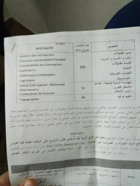 إدارة الـجمارك تـعـلن عن مباراة توظيف 226 منصبا لحاملي الباك +2 برسم 2017