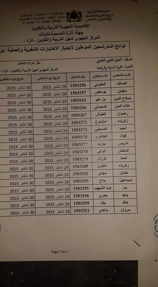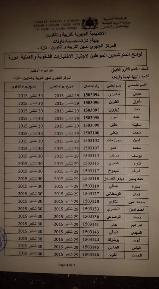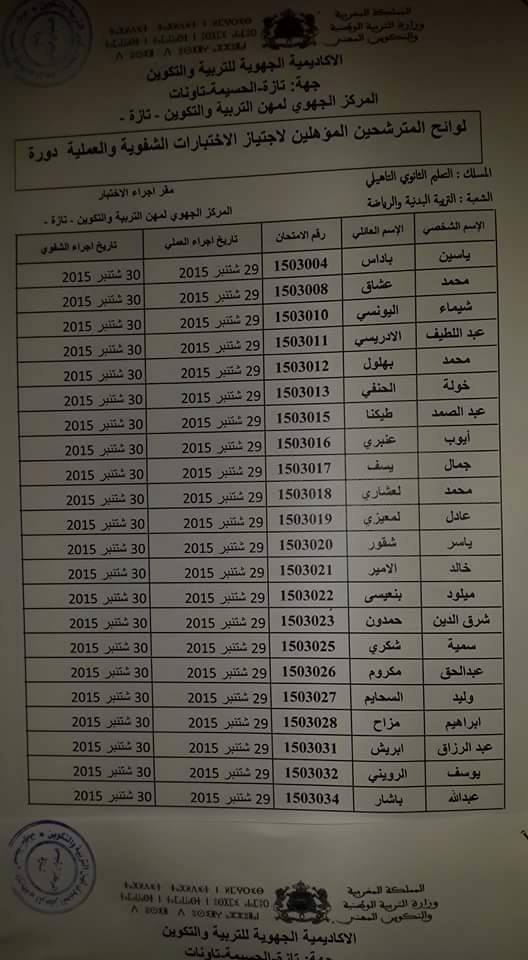 تازة تاونات الحسيمة نتائج الإمتحان الكتابي من مباراة ولوج المراكز الجهوية لمهن التربية والتكوين  2015-2016