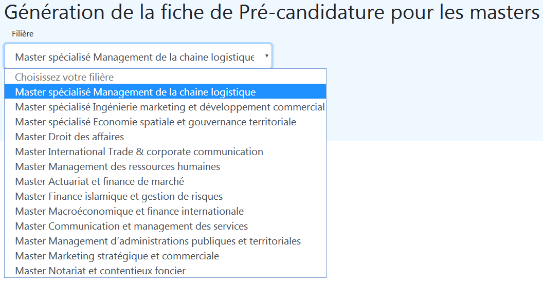 Avis aux candidats ayant réalisé la pré-candidature en ligne Masters et Masters spécialisés :