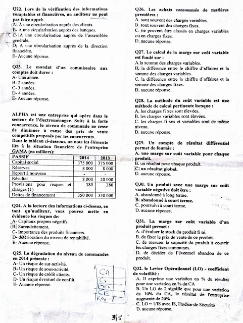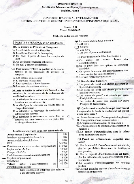 Epreuve du Concours d’accès au Master Contrôle de Gestion et Systèmes d’information