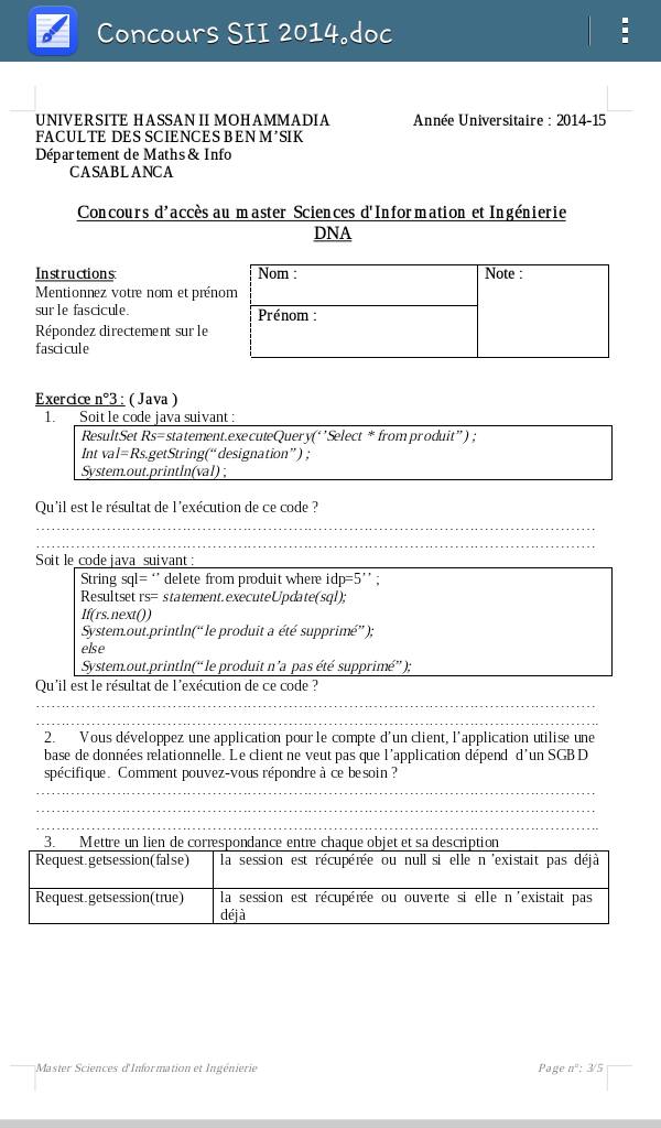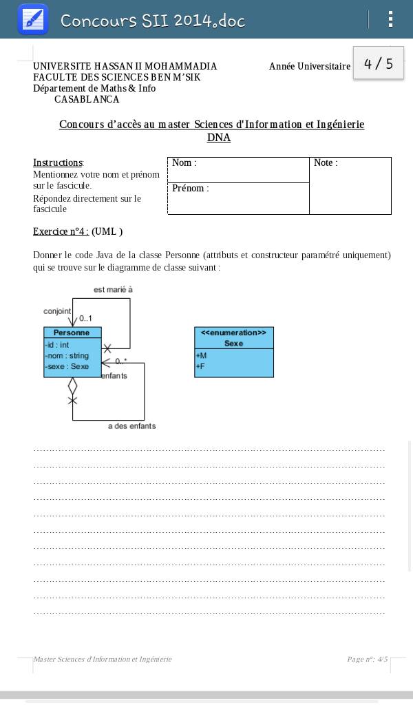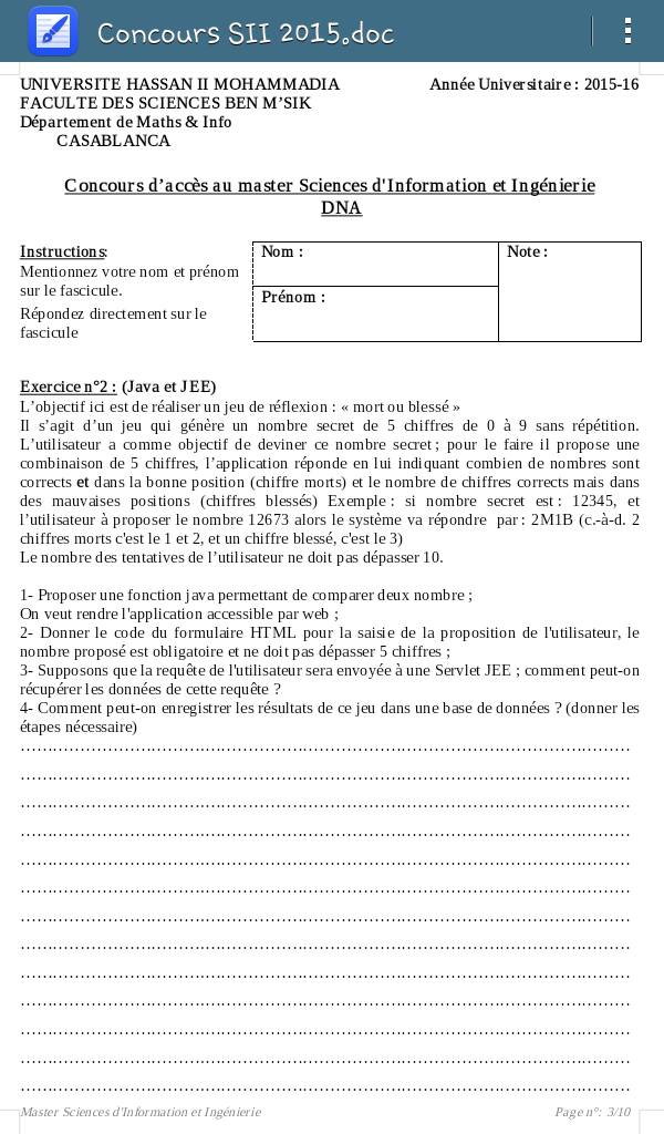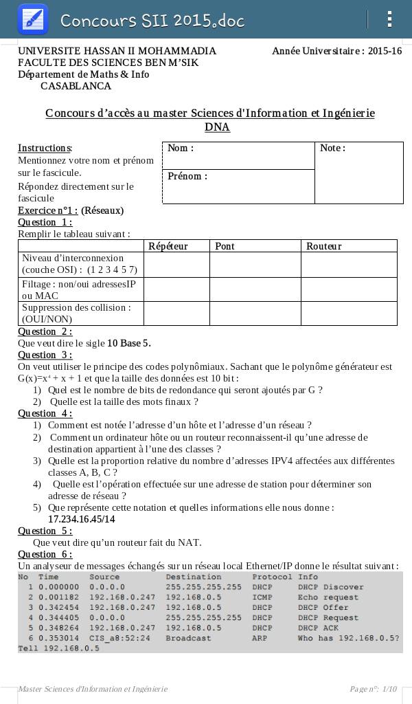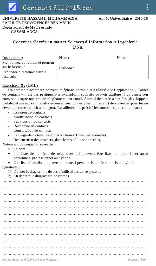 Epreuves d’accès au Master Sciences d’Information et Ingénierie DNA